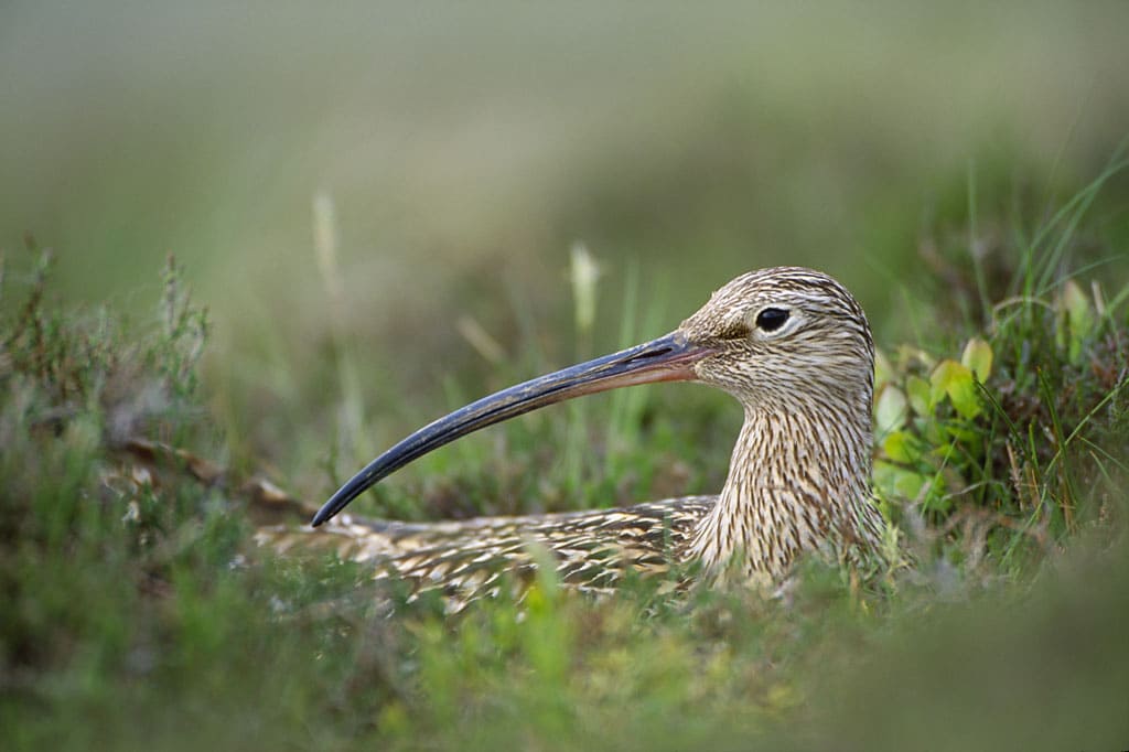 Morphologie : Le Courlis cendré (Figure 4) est le plus grand limicole d’Europe, avec une longueur de 55–65 cm pour une envergure de 90–110 cm et un poids de 600 à 1200 g. Son plumage est brun-gris tacheté. Son long bec courbé vers le bas mesure jusqu’à 19 cm. L’espèce présente un dimorphisme sexuel relativement marqué, avec les femelles en moyenne plus grandes et avec un bec plus long que les mâles.
